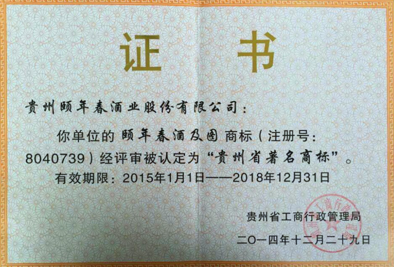 颐年春热烈庆祝2014年12月29日颐年春LOGO荣获“贵州著名商标”