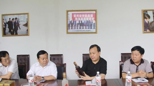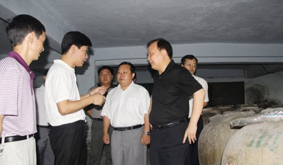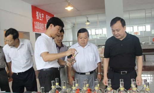 杨德华一行在公司董事长兼总裁李宋彬等公司高管陪同下,查看了酿酒车间、基酒库房、成品酒库房、配制酒库房、检验室、包装车间,与检验室检验员冉隆萍亲切交谈,了解了检验的有关问题。杨德华在听取董事长李宋彬对公司发展前景、目标、需要解决问题作的介绍后说,公司给人的总体感觉是企业有规模、厂区很整洁、管理正常有序,发展很有希望。他指出:我们双方要“围绕发展发财,促进企业成长”抓合作抓发展。