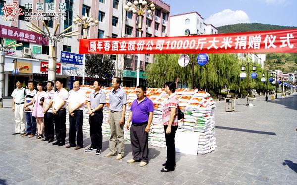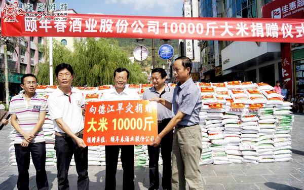 5月份以来,德江县持续高温干旱天气,全县20个乡镇不同程度遭受旱灾,部分乡镇出现了农作物大面积欠收、减产,人民群众生活困难。颐年春酒业股份公司作为德江县本地企业,心系灾区人民,公司秉承一贯“回报社会主动承担社会责任”的宗旨,经公司董事会决定,特向德江县受灾乡镇捐赠10000斤优质大米。